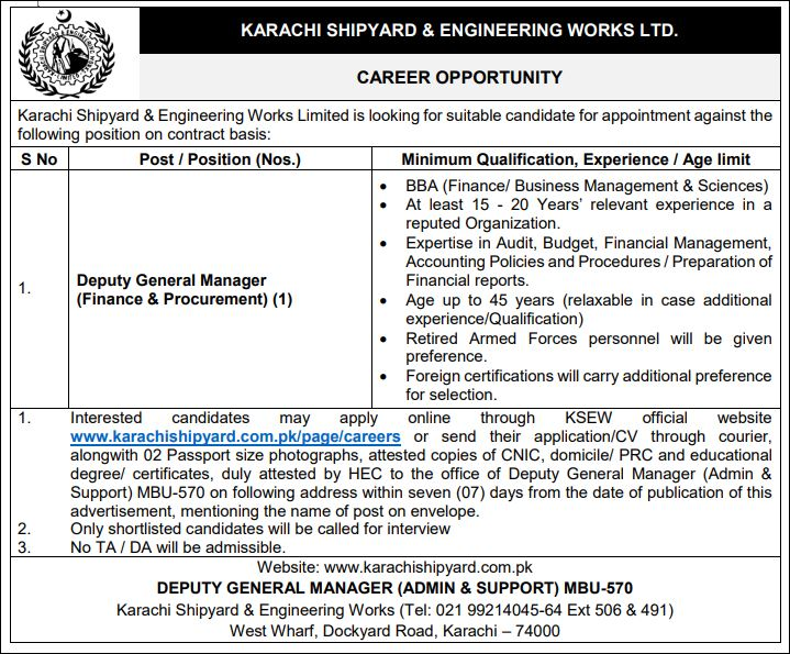 | Job Title | Karachi Shipyard & Engineering Works Limited 2025 |